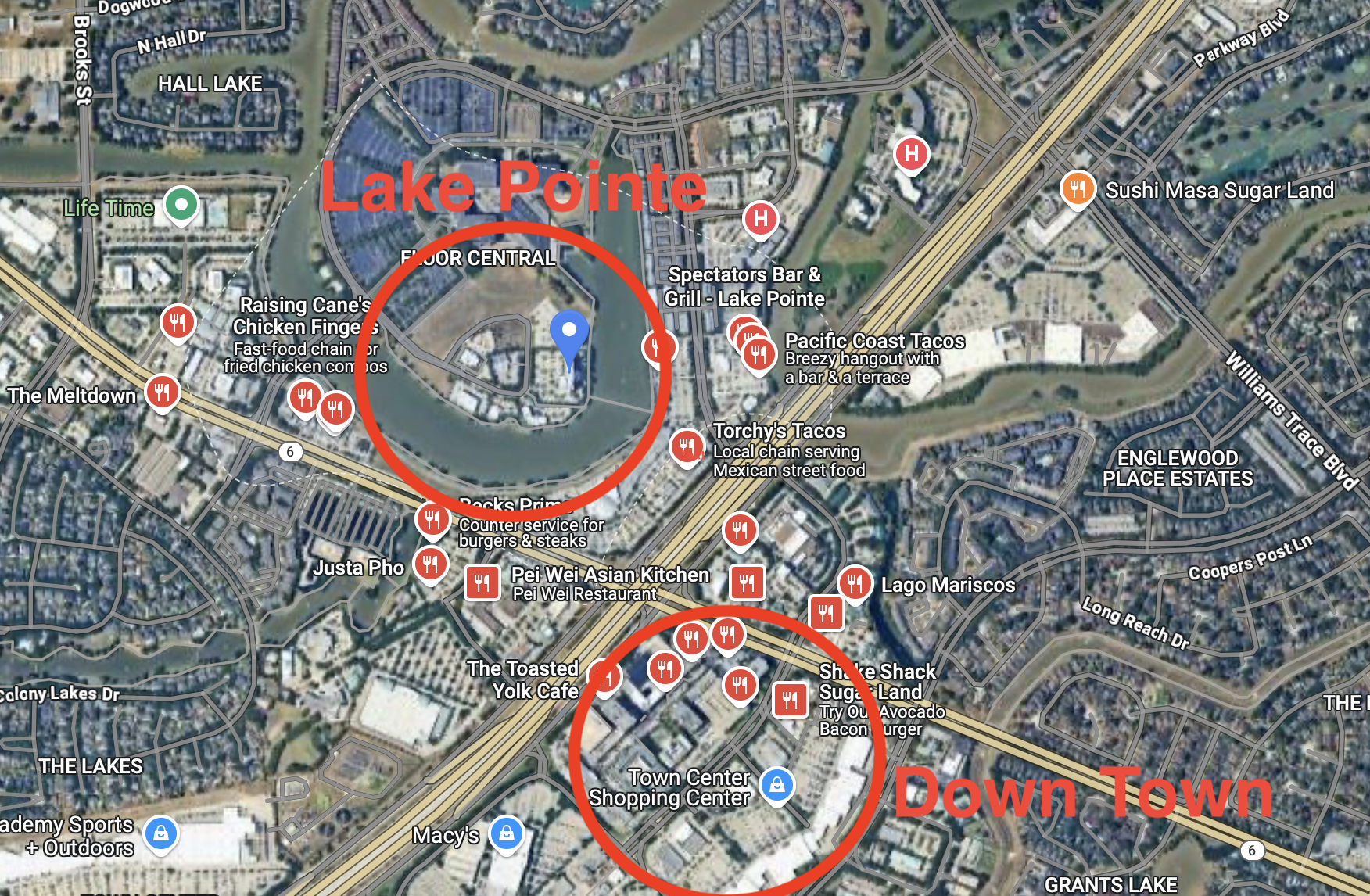 The Donut Dash will be held around Lake Pointe, Sugarland. There are many walkable areas and lounge spots to hang out with your groups and enjoy the down time.